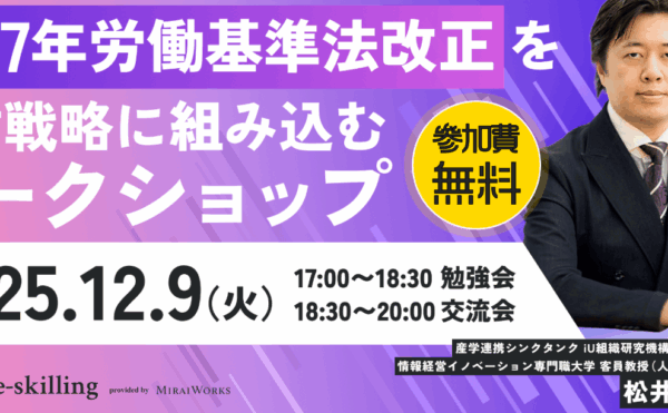 NEW 2025年11月13日セミナー・特別情報forestconsulting1@gmail.com 2027年労働基準法改正を人材戦略に組み込む—実践型ワークショップ開催 atみらいワークスiU組織研究機構 代表理事の松井が、2027年労働基準法改正をテーマにみらいワークス主催の ワークショップに登壇します。 記事の詳細はこちら→ https://mirai-works.co.jp/re-skilling/ […]